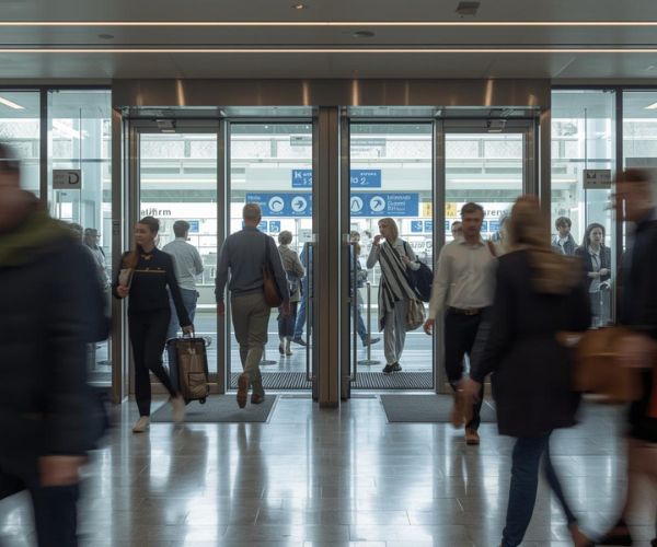 Vào các khung giờ bắt đầu và kết thúc ca làm việc, cửa tự động giúp giảm tình trạng xếp hàng, chen chúc tại lối ra vào. Khả năng đóng mở nhanh và liên tục giúp phân luồng hiệu quả, đảm bảo lưu thông ổn định trong toàn bộ tòa nhà.